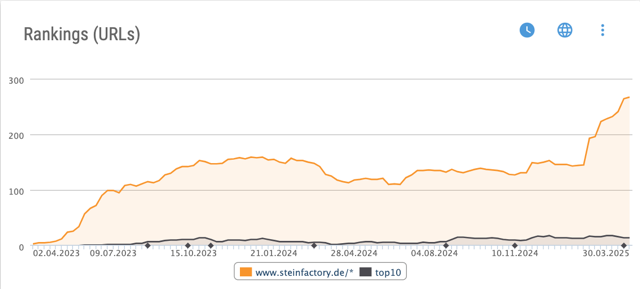 Gemeinsam starteten sie mit einem Kick-off, gefolgt von einer fundierten Keyword-Analyse. Daraus entstand ein konkretes Konzept für den neuen Online-Shop „steinfactory.de“. Während Thomas die Seiten technisch umsetzte, brachte Stefanie gezielt SEO-Optimierungen und strategische Impulse ein – ein echtes Match aus Kreativität und Umsetzungskompetenz.