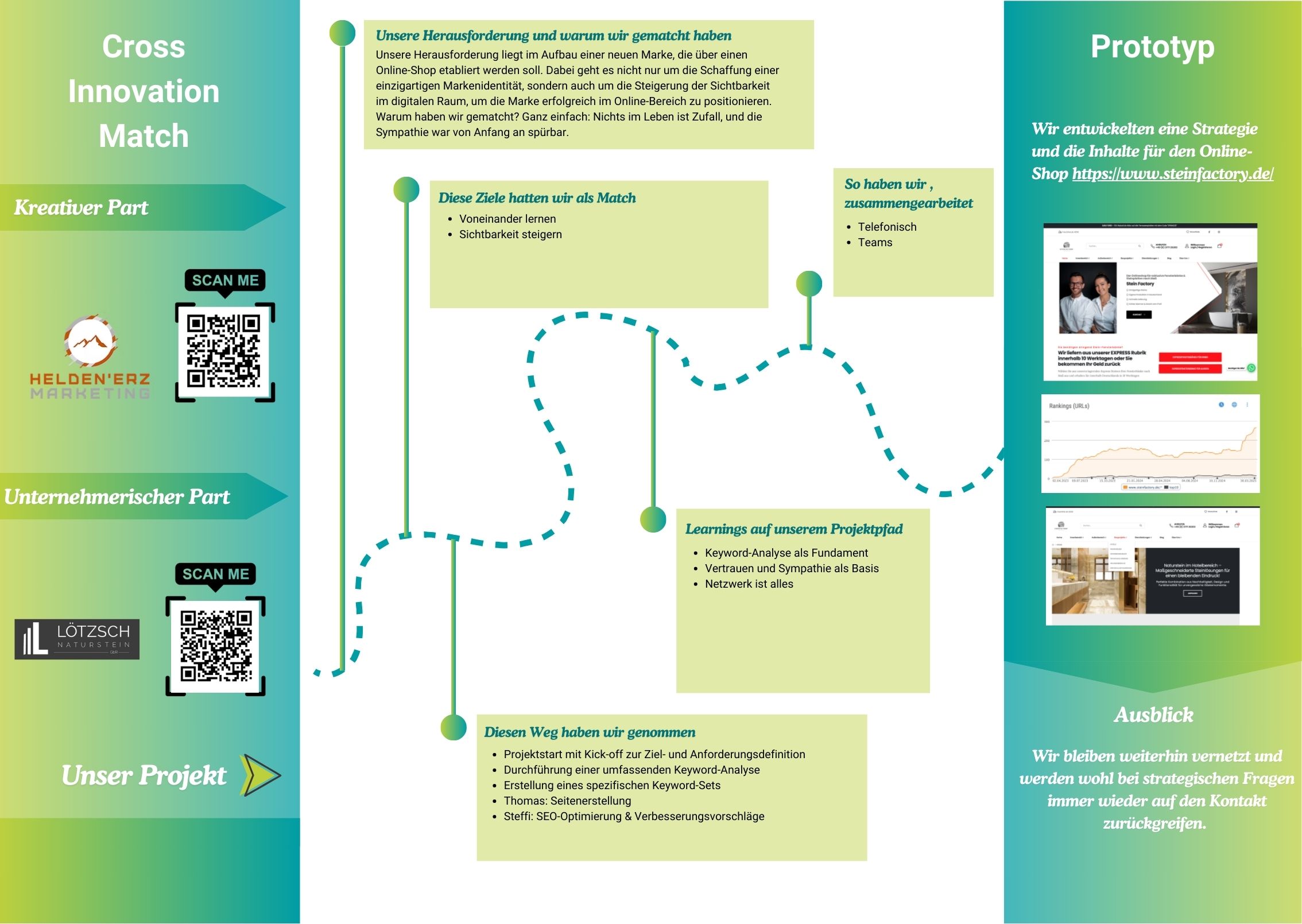 Stefanie Suchánek von HELDEN’ERZ Marketing und Thomas & Christina Lötzsch von Naturstein Lötzsch haben sich im Rahmen von CIMIS 2 zusammengetan, um eine neue Marke mit Online-Shop erfolgreich zu etablieren. Ziel war es, eine klare Markenidentität zu schaffen und gleichzeitig die digitale Sichtbarkeit deutlich zu erhöhen.