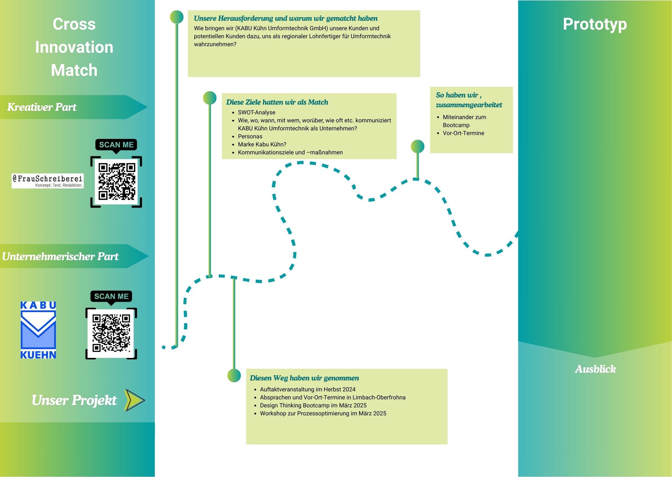 Auch wenn (noch) kein Prototyp steht, ist der Anfang gemacht – mit realistischen Schritten und einer starken Grundlage. Die Zusammenarbeit war empathisch, lösungsorientiert und zeigt: Kommunikation im Mittelstand braucht Geduld, Strategie – und passende Partner!