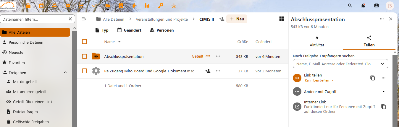 Dafür analysierten sie zunächst die Arbeitsabläufe, definierten die Bedarfe und testeten passende Tools. Ergebnis: Ein durchdachtes Konzept zur Prozessoptimierung mit Hilfe der Nextcloud – samt Dokumentation, Use Cases und konkreten Anwendungsmöglichkeiten. Ihr Prototyp zeigt praxisnah, wie digitale Strukturen auch in gemeinnützigen Organisationen funktionieren können.