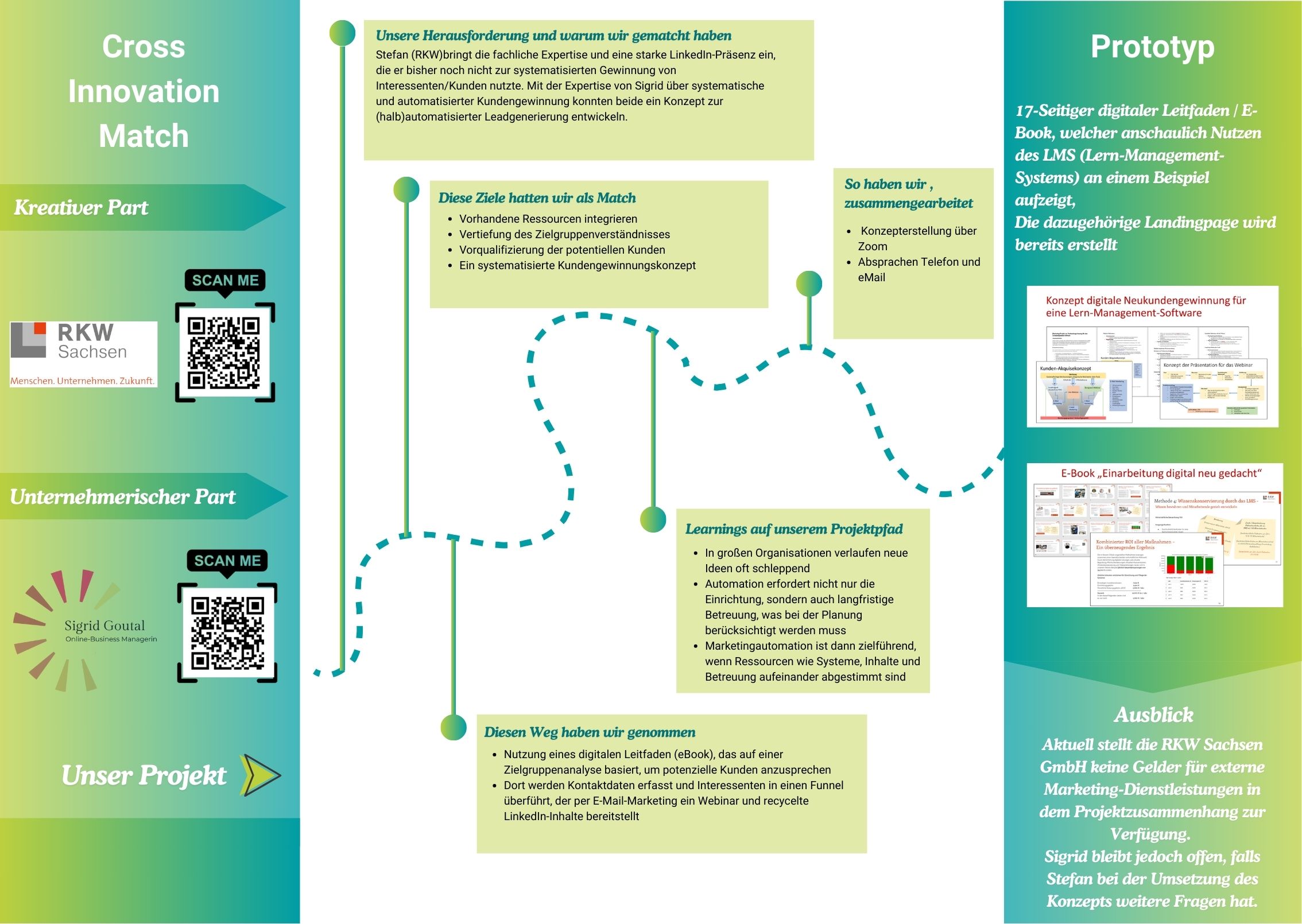 Stefan Jentzsch von der RKW Sachsen GmbH und Online-Business-Managerin Sigrid Goutal haben sich im Rahmen von CIMIS 2 mit dem Thema Leadgenerierung beschäftigt – konkret ging es darum, wie Stefans Fachwissen und LinkedIn-Präsenz besser für die systematische Kundengewinnung genutzt werden können.