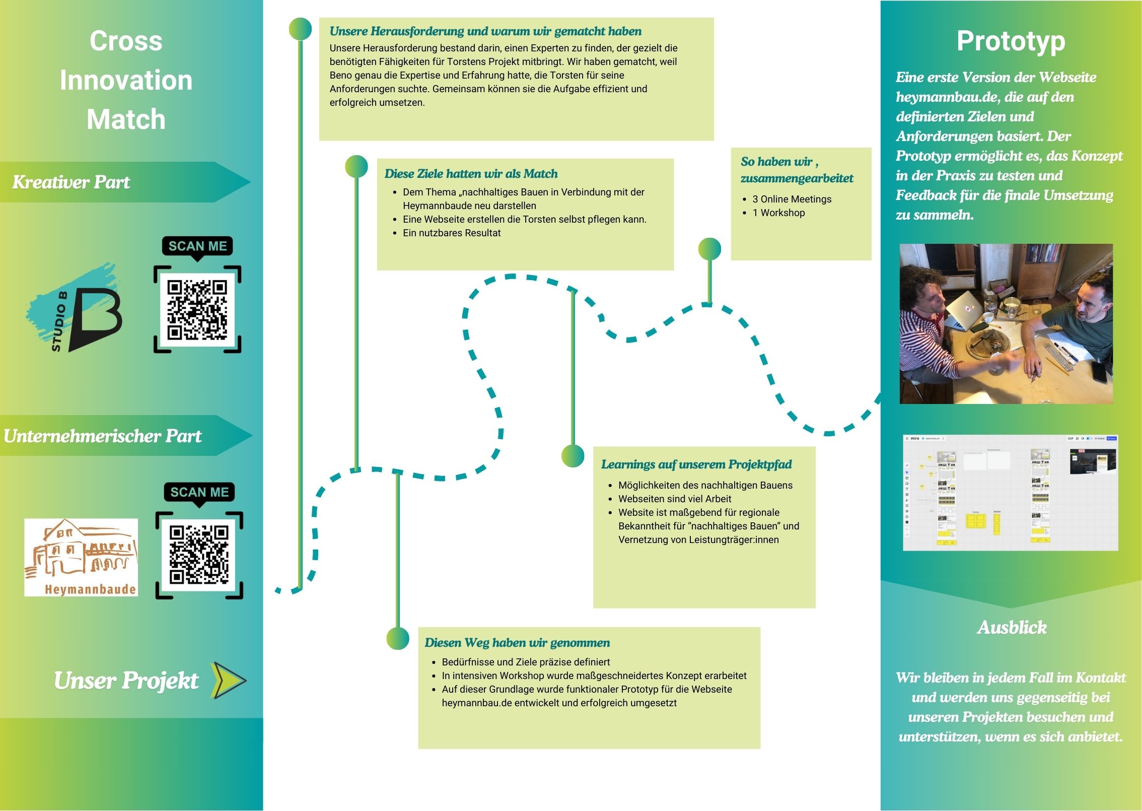 Torsten Haubold von Heymannbau.de und Beno Brězan von Studio B haben sich im Rahmen von CIMIS 2 zusammengefunden, um ein zentrales Ziel umzusetzen: die Entwicklung einer Webseite, die nachhaltiges Bauen sichtbar macht – funktional, klar und selbstständig pflegbar.